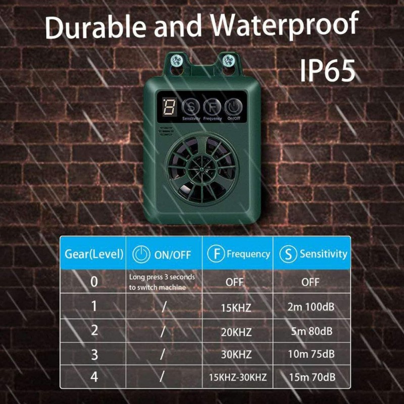 -miniaturna naprava,ki jo lahko obesite na drevo,v zaprte prostore,zunanje stene ali stebre ograje,lahko se varno uporablja v vseh zaprtih prostorih ali na prostem v vseh vremenskih razmerah -vodoodporen IP65 ( ni primeren za potapljanje,prenese sež,vlago,mraz,sneg )